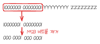 MSB 비트를 제거합니다. → (1001000 0000001)