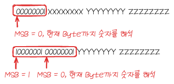 아까와 동일하게 첫 바이트는 무시하고, 뒤에 바이트들로 진행해보겠습니다. 첫번째 바이트의 MSB 비트가 1인 것을 확인할 수 있었는데요. 그렇기 때문에 그 뒤의 바이트까지 같이 확인해야만 합니다 💪